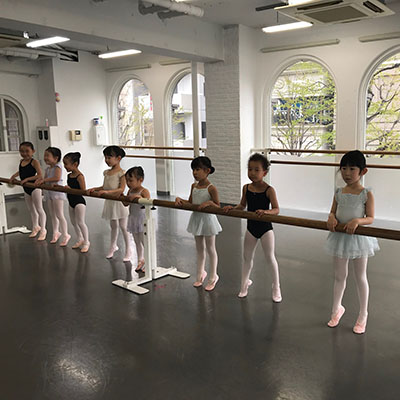 バレエに必要な柔軟性を養い、リズムに乗って楽しく踊りましょう。また、お稽古の基本マナーも憶えていきましょう。